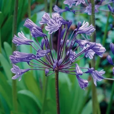 Excellent for adding structure, height and colour to garden borders, the blooms of Agapanthus ‘Sunfield’ are also exceptionally pretty up close, with dark-blue buds and striped, trumpet-like flowers. One of the largest agapanthus.