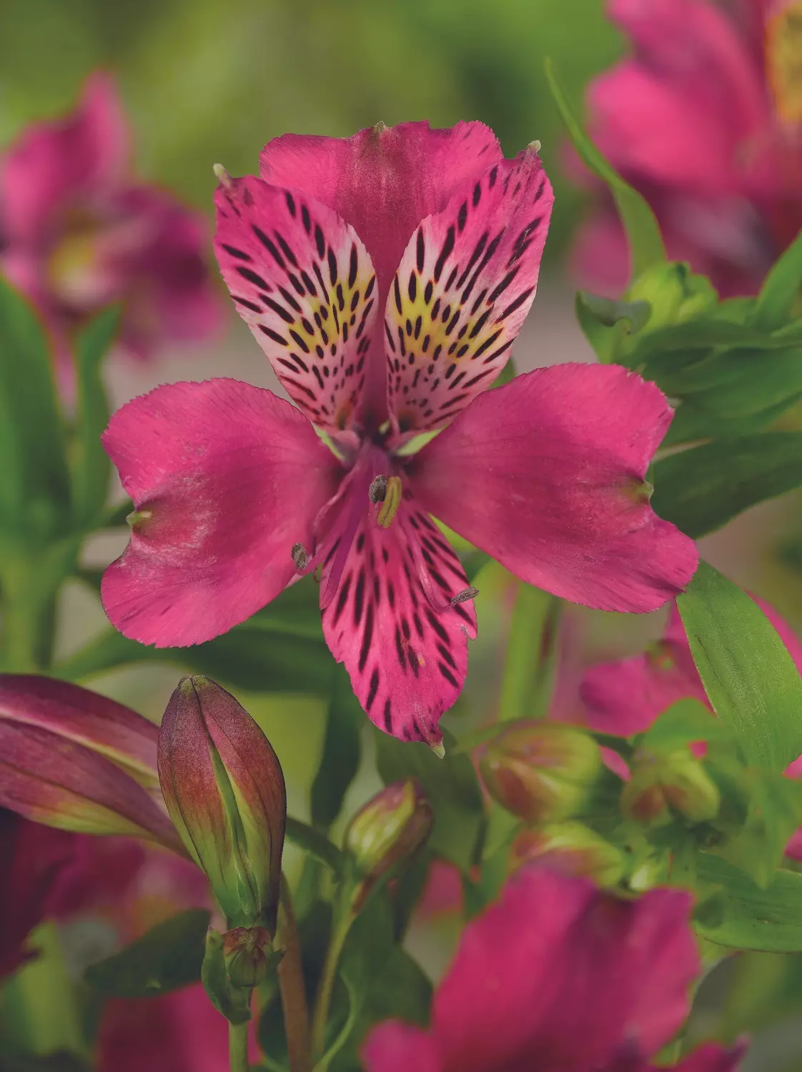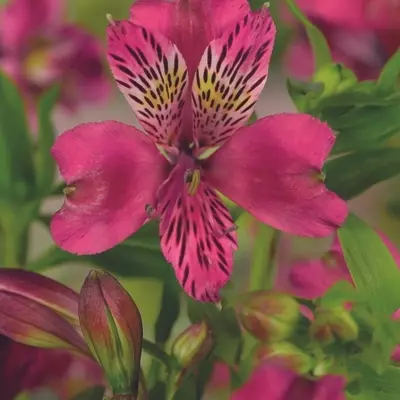 An exciting variety, Alstroemeria ‘Dandy Candy’ has shorter stems perfect to grow in pots and containers. This peruvian lilies large flowers feature a wonderful blend of colour - dark pink flashes, edged white, with yellow inner petals speckled dark brown.