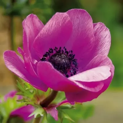 Anemone De Caen ‘Sylphide’ flaunts velvety, rose-pink petals with intricate violet veining, encircling a button of indigo-black stamens. Borne atop feathery, fern-like foliage and dancing on stems of 25cm, these dainty blooms are adorable for container displays and the front of your borders.