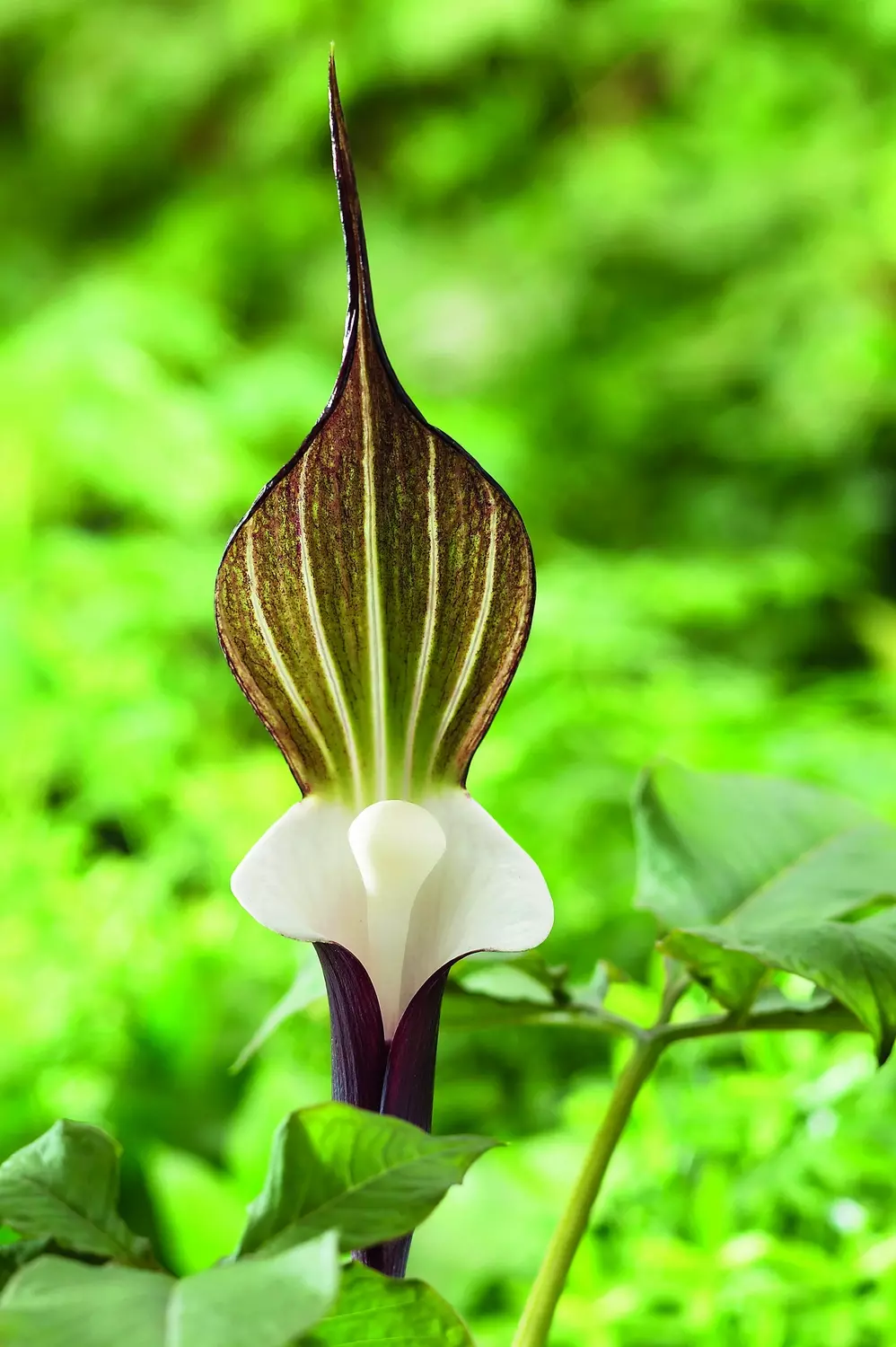 Arisaema 'Sikokianum', is an architectural beauty, rare, enduring, unforgettable.