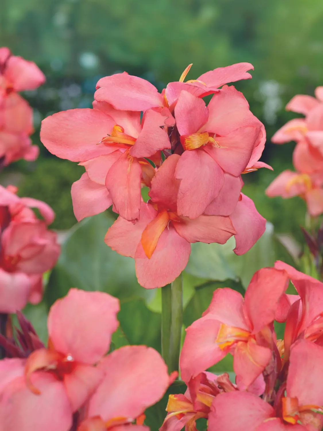 Canna 'Peach Blush' brings a gentle, romantic glow to the summer garden with its soft peach-pink blooms. Carried above lush, broad green foliage, the blooms have a luminous quality that instantly softens bold planting schemes.