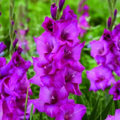 Standing at a compact 50 - 60 cm, Glamini Gladioli 'Evi' offers all the architectural elegance of a classic gladiolus but in a more manageable, space-friendly form. Flowering from July onwards, ideal for planting in the flower border or in containers.
