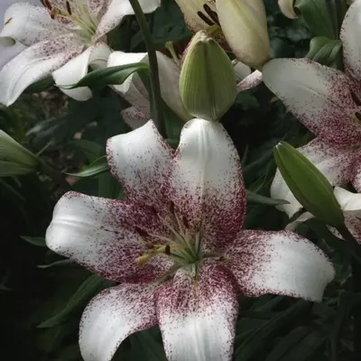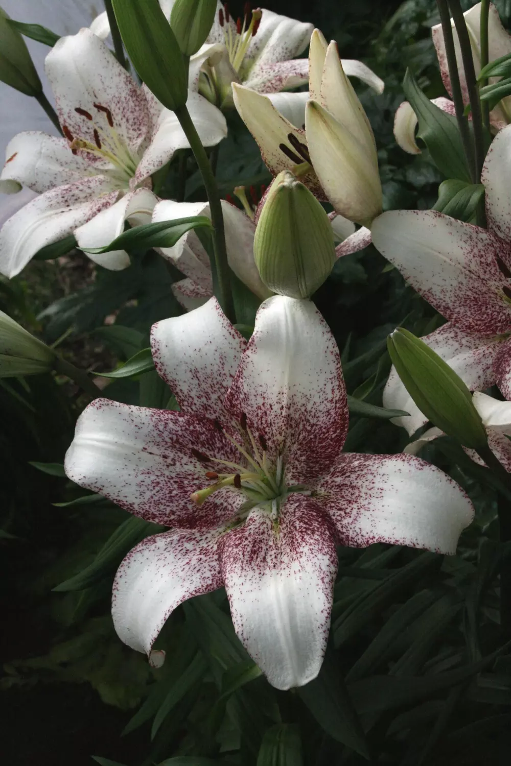White petals speckled with lots of purple spots add intrigue to Asiatic Lily 'Sweet Zanica'. The flower’s unique pattern is just right for adding an artistic touch to your eye-catching floral displays.