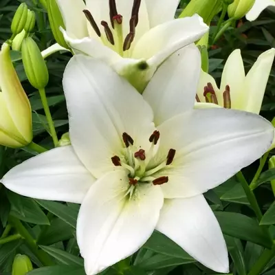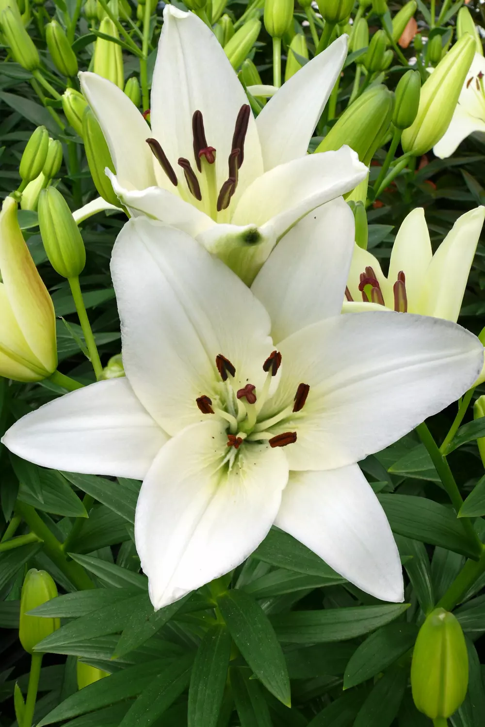 Pure white flowers bring an air of serenity to garden beds. Asiatic Lily 'Snowdon' intensifies any garden with its simplicity and grace, offering timeless beauty.