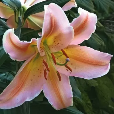 A refreshing and compact lily for late summer borders and pots, Oriental Lily ‘Salmon Party’ grows up to 55cm tall, making it an ideal container and border plant.