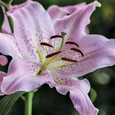 Sweetly fragrant Oriental Lily ‘Josephine’ is a popular, tall variety, perfect for enhancing your late summer borders with a lofty swathe of soft pink. The candy-pink blooms feature a paler middle rib along the centre of each petal and a smattering of rust-orange freckles, matching their dusty anthers.