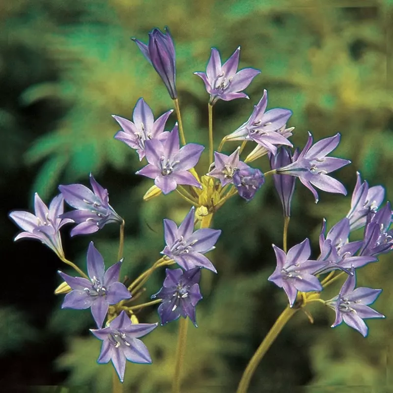 With sprays of starry, trumpet-shaped, violet-blue blooms held in delicate umbels, Triteleia ‘Queen Fabiola’ resemble miniature Agapanthus. The clusters of flowers are carried on long, wiry stems above grass-like basal leaves.
