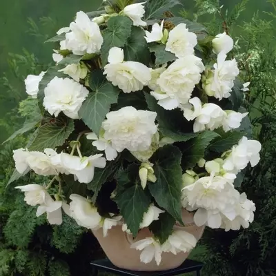 Pendula Cascade 'White' Begonias are excellent for adding beautiful colour to your summer displays. Elegant white double frilly blooms can reach up to 15 cm in diameter and cascade over containers. Our begonias flower for months on end, from May until at least September.