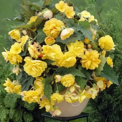 Pendula Cascade 'Yellow' Begonias are excellent for adding a pop of colour to your summer displays. Lemon yellow double frilly blooms can reach up to 15 cm in diameter and cascade over containers. Our begonias flower for months on end, from May until at least September.