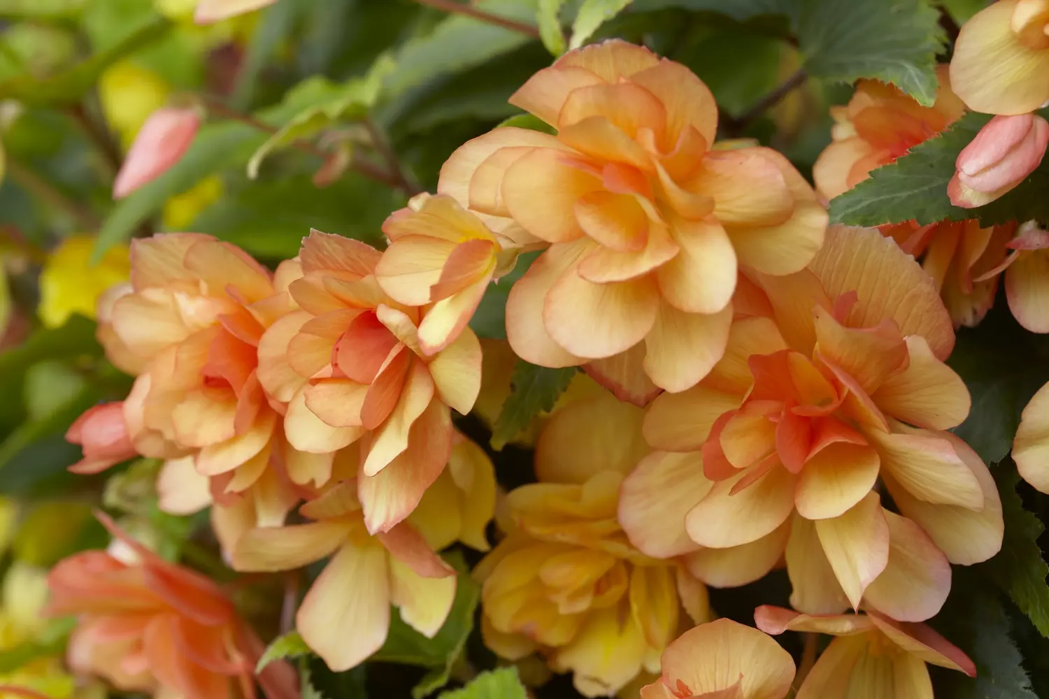Fill pots, hanging baskets, window-boxes, unusual vintage containers and borders with apricot shades begonias for a show-stopping display. They can reach a flowering height of up to 30 cm.