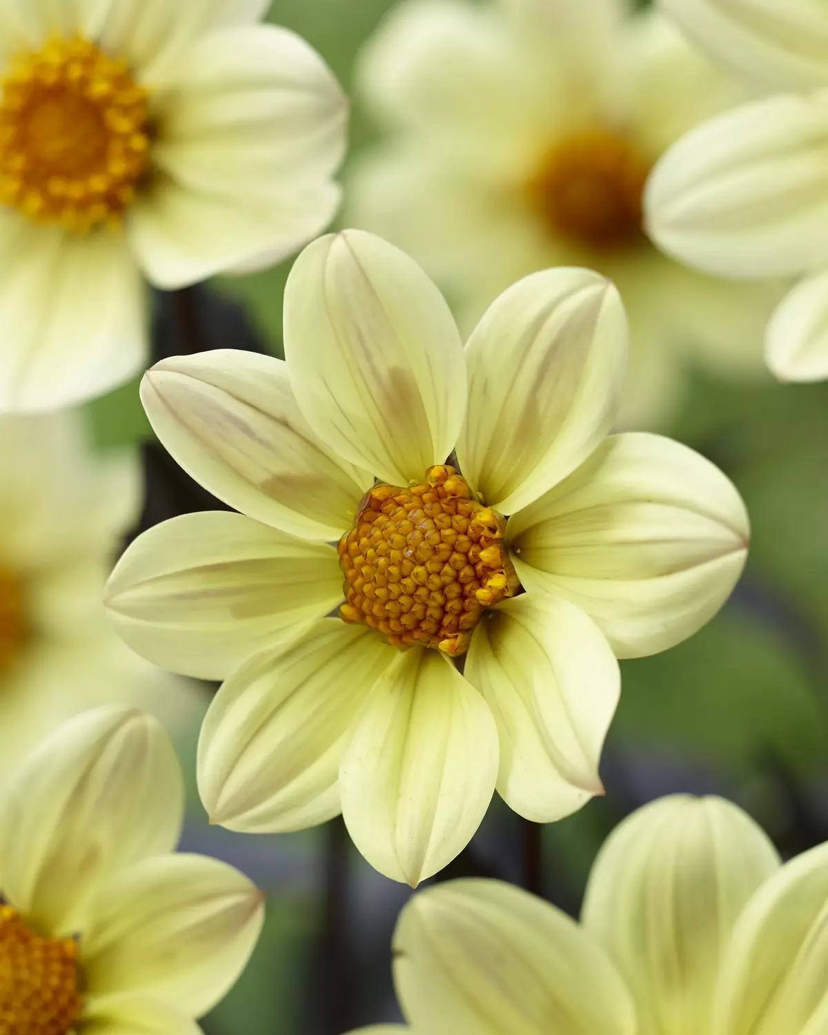 This 'Happy Days Lemon' dahlia features single-type blooms with a golden boss of stamens – a superb choice to tempt bees and butterflies into your garden. Valiantly flowering until the first frosts, these delicate blooms are an enchanting sight late in the season.