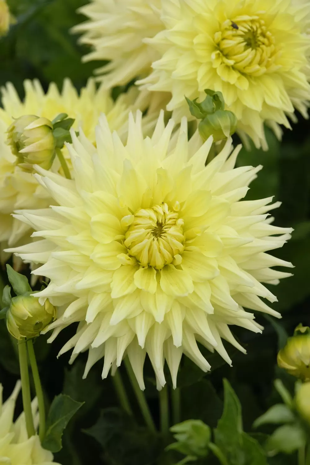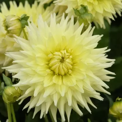 Beautifully uplifting, Semi-Cactus Dahlia 'Trooper Dan' shines with its stunning lemon-yellow blooms. Features slightly broader, gently tapered petals, giving each flower a fuller, more substantial look while still maintaining the elegant starburst style.