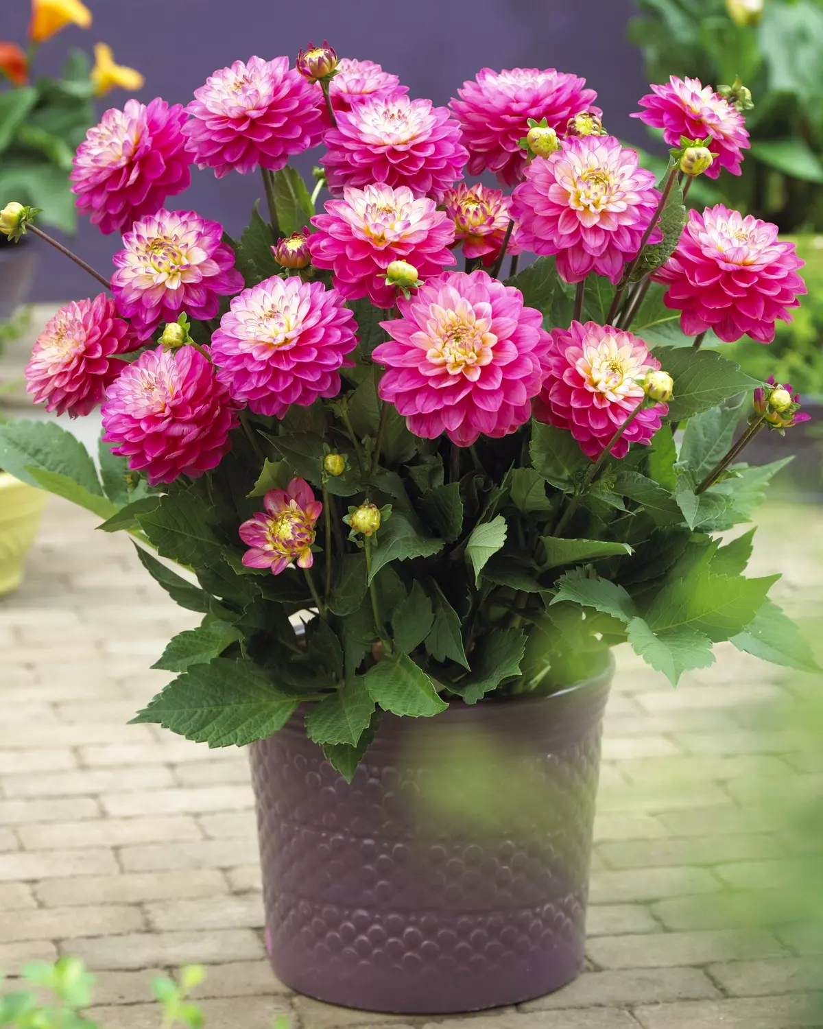 Light up your garden with the radiance of Dahlia ‘Melody Allegro’, luminous salmon-pink flowers shading to yellow in the centre. Designed for smaller spaces, it thrives in containers, courtyard gardens, and the front of sunny borders.