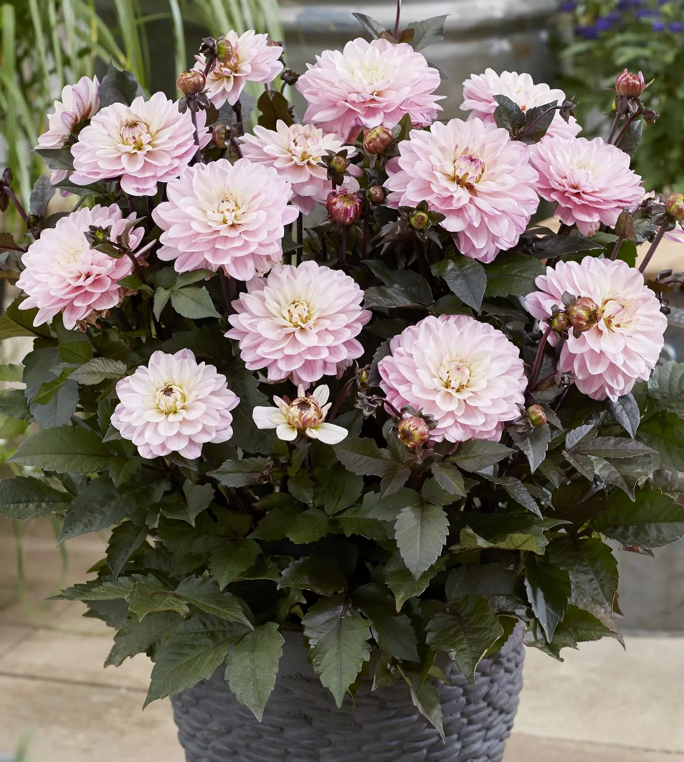 Invite a gentle chorus of colour into your garden with Dahlia ‘Melody Harmony’. A compact variety with blooms that open in pale shades of lilac, against a creamy white background and at the centre a hint of yellow.