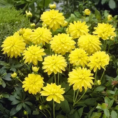 Dahlia ‘Melody Latin’ offers an impressive display even in smaller spaces. This compact upright variety is celebrated for its glowing yellow blooms, each one perfectly rounded with smooth, full petals that create a warm, sunlit presence from the moment they open.