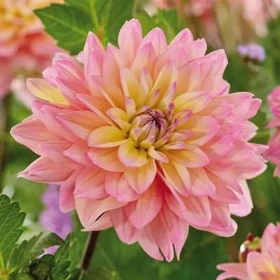 The stunning blooms are daubed with brush strokes of pink, yellow and lilac, produced continually from July until the first frost. With a height of 80 cm, decorative dahlia 'Mondriaan' is also perfect for growing in pots and containers.
