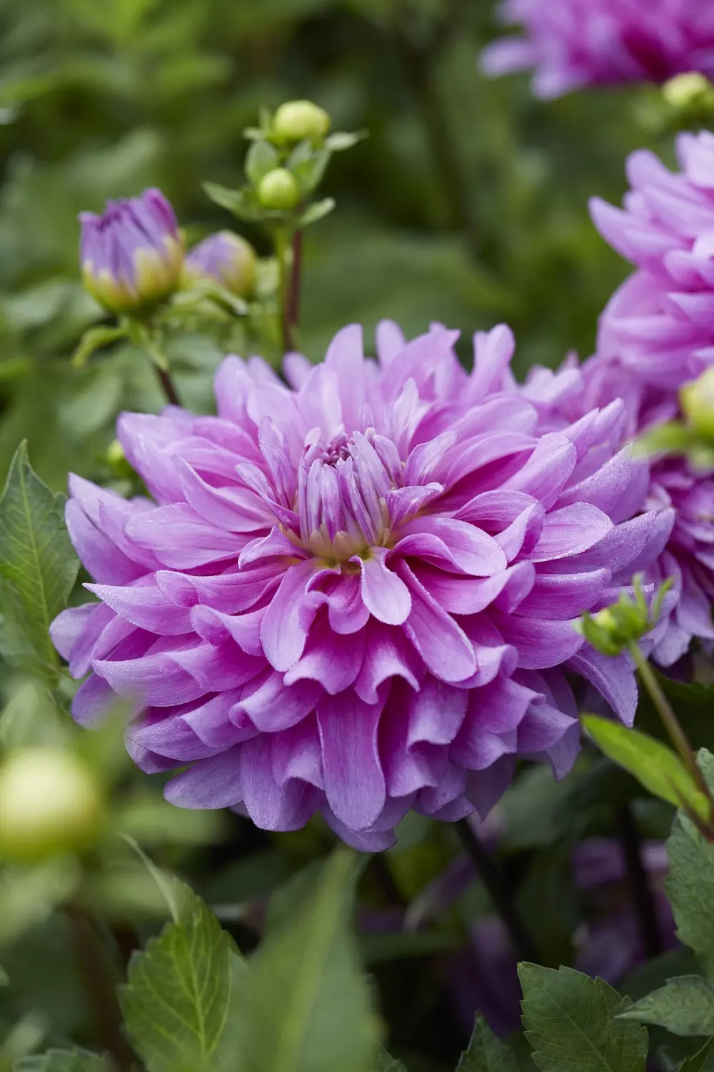 A swirl of twilight captured in bloom, Decorative Dahlia 'Bluetiful' unfurls in layers of the lavender-blue ruffled petals. The height of 90 cm and strong stems makes it standout focal point in borders and pots.