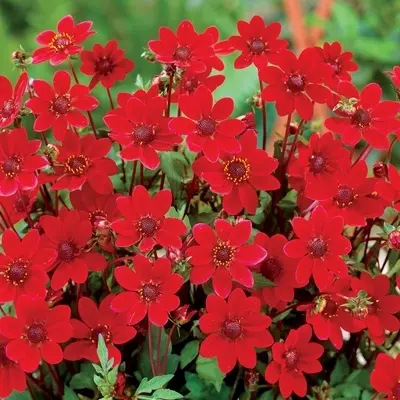 Dahlia 'Topmix Red' has a neat and compact growth habit, reaching a maximum height and spread of 50cm, which makes them an excellent choice for eye-catching pots. Pick stems to enjoy inside your home in floral displays, and deadhead regularly for a constant stream of crimson flowers.
