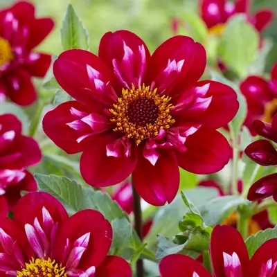 The first in our 'Swan Island' dahlia collection, bright and delightfully spirited. Collarette 'Hootenanny-Swan Island' dahlia lives up to its name and celebration of music, bringing fun and color wherever it blooms.