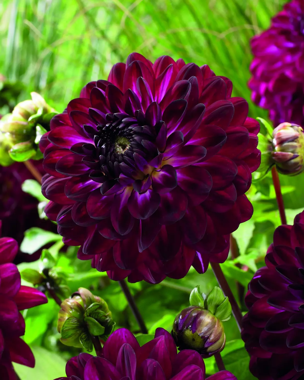 'Blue Bird' is a striking Waterlily Dahlia with luxurious dark red blooms adding drama and intensity to garden flower borders. Slightly curved layered petals, an airy elegance reminiscent of floating waterlilies.