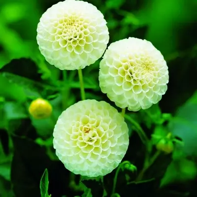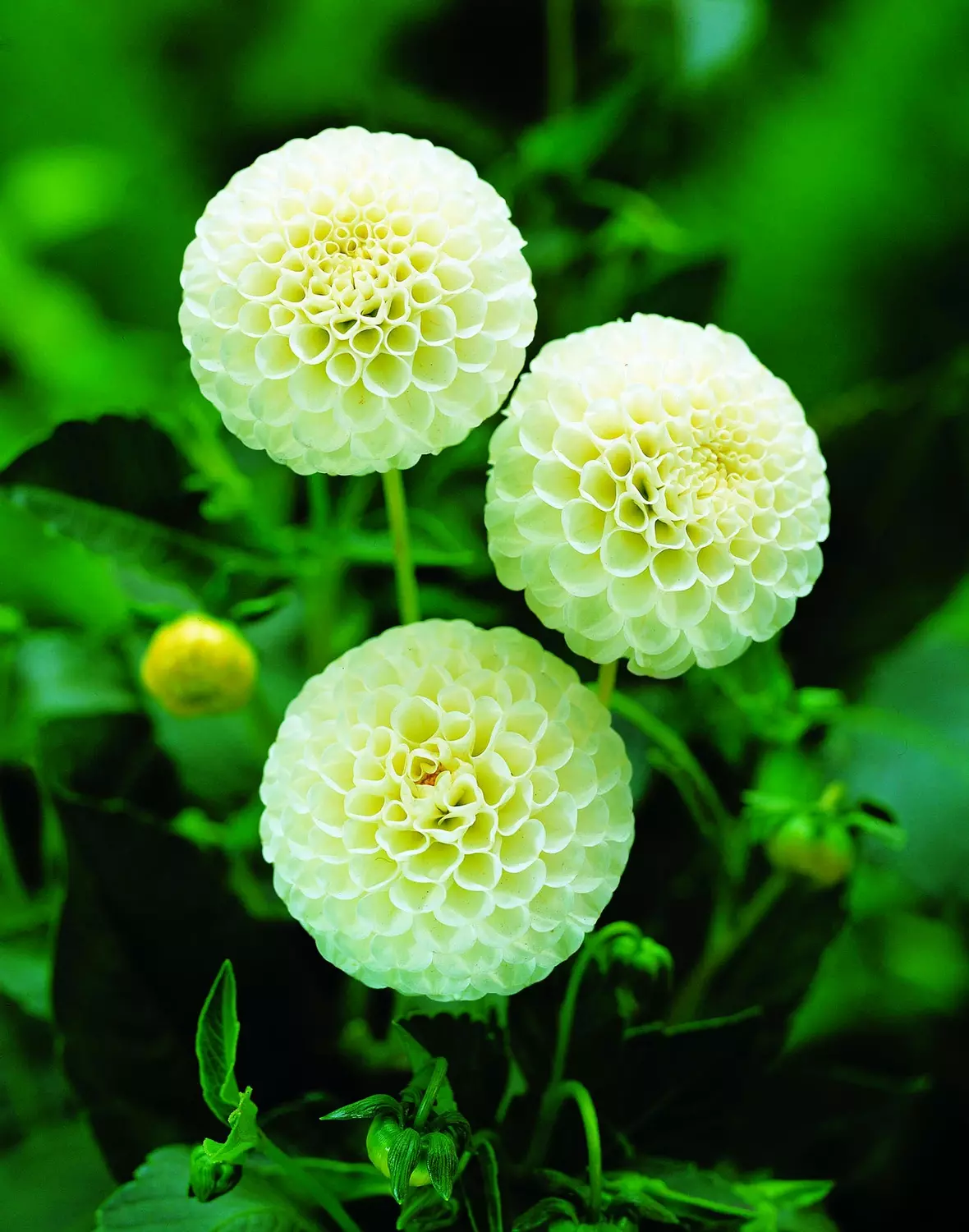 A compact, flawless honeycomb arrangement of tiny petals forms each golf ball sized flower. Strong stems hold the pompom dahlia 'Snowflake' heads upright. Keep deadheading and cutting flowers throughout the season to ensure a flurry of fresh blooms. Height reaches 80 cm.