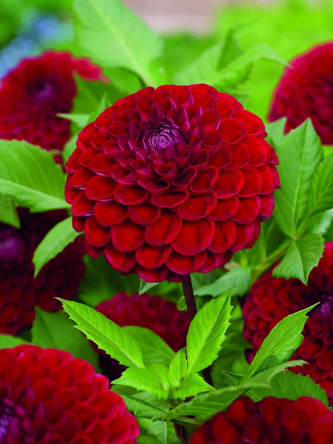 An exceptional choice for cutting, ball dahlia 'Cornel' ensures blooms from midsummer well into autumn due to its prolific flowering habit. In the garden, its compact shape and deep colour pairs beautifully with softer pastels or contrasting brights. The mature plant reaches 100 cm.